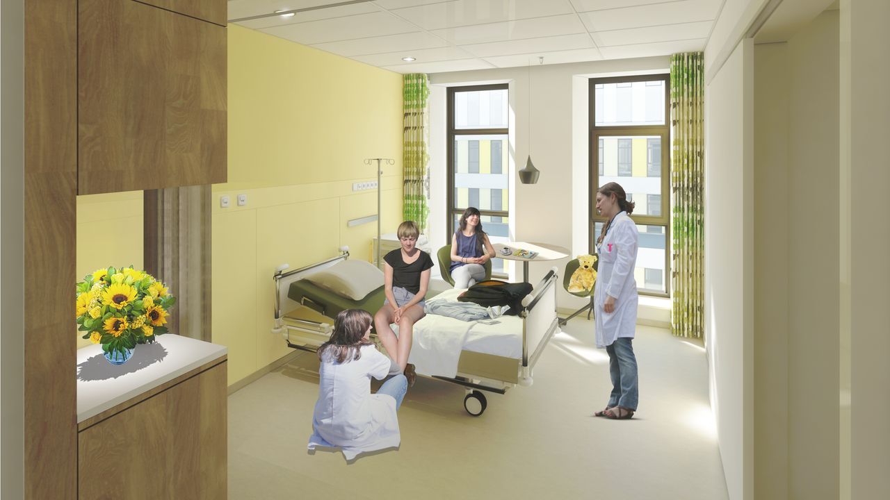 Of zo’n kolossaal gebouw, van totaal 128.000 vierkante meter, niet erg onpersoonlijk is? “Dat is altijd een uitdaging”, geeft Vos toe. “Juist door die aparte gebouwdelen willen we het kleiner laten aanvoelen. Het moet een warm bad worden, waarbij de patiënt centraal staat.”