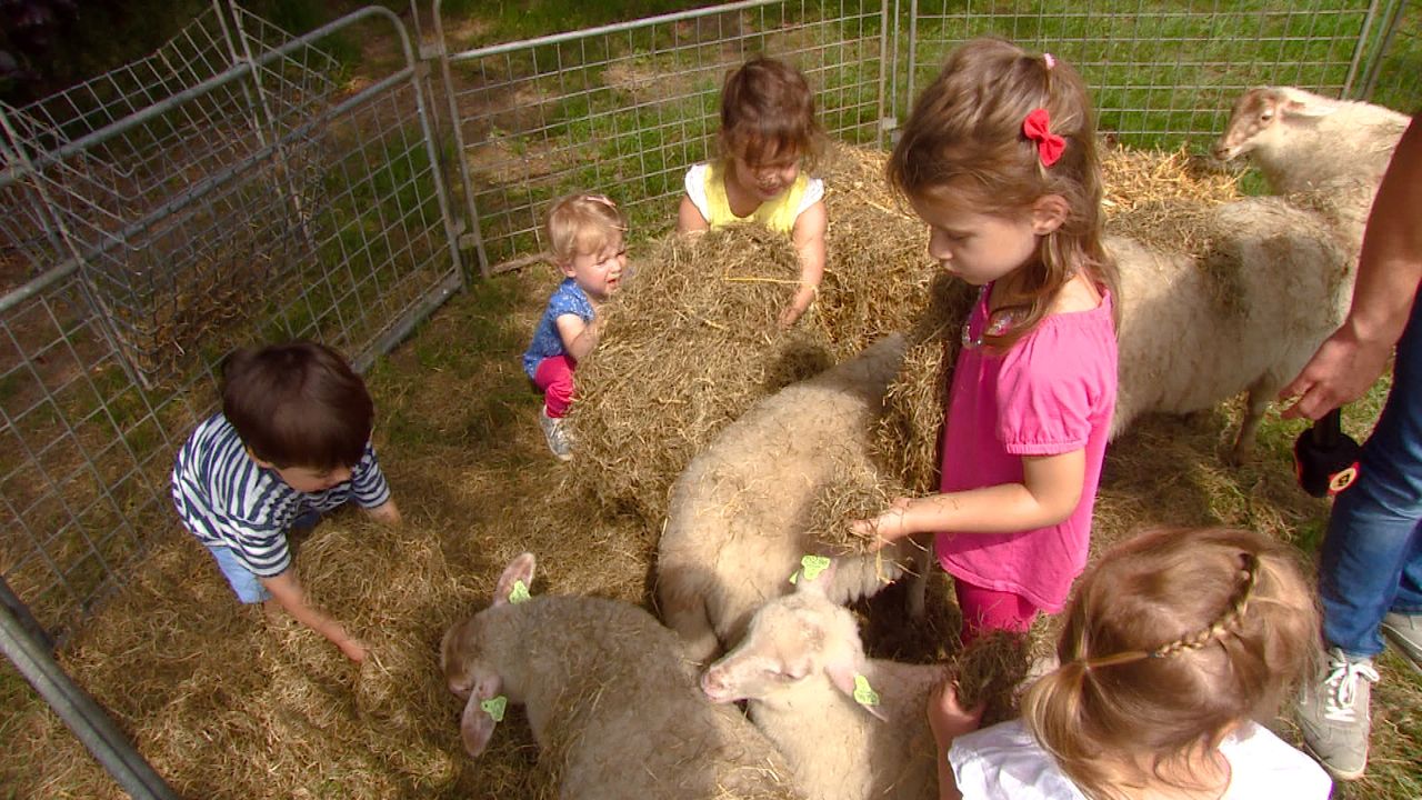 Het is het derde jaar dat de feestdag wordt georganiseerd op het landgoed van Kapellerput. Dat trekt veel jonge ouders met hun kinderen. "Het zijn echt knuffeldieren! Ze zijn superlief", weet de vierjarige Jesse van Kroone uit Weert.