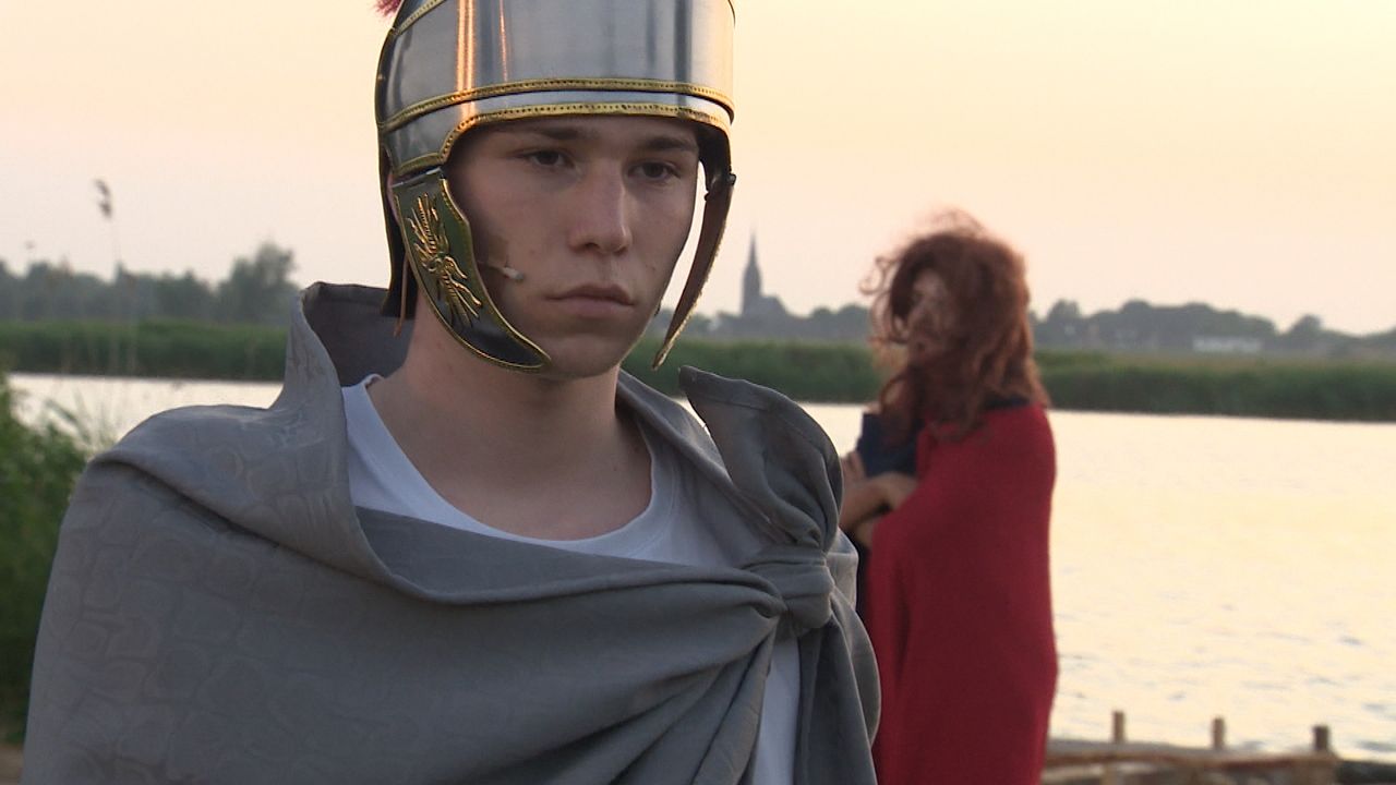 Met volle overtuiging trekken de Romeinen ten strijde. Regisseur Harold Schraven spreekt zijn acteurs nog even streng toe. Daarna volgt de doorloop. "Ik hoop mensen echt te ontroeren en te boeien. Ik wil ze meenemen in mijn fantasie."