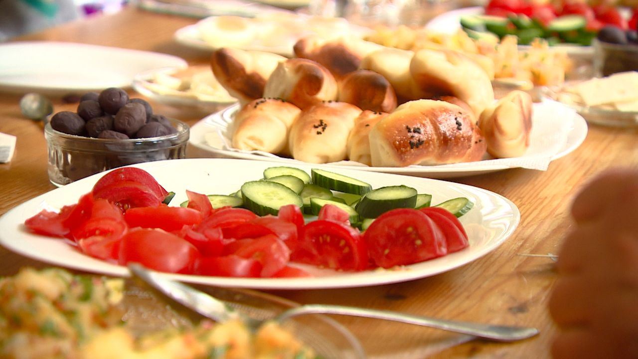 Na het ochtendgebed in de moskee rond halfzes, kan het eten beginnen. Dat niemand iets tekort komt, is duidelijk. Om de paar minuten verschijnt een nieuwe schaal op tafel. "Wil je nog wat?", is de meest uitgesproken zin aan tafel deze dagen. De 21-jarige Furkan Bulbul geniet van het eten. "Het is gewoon drie dagen feest! Lekker eten en gezellig samen zijn. Daar draait het om."