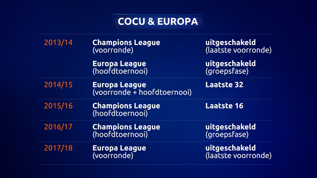 Tegenover het Champions League-succes van 2015/16 staan de magere Europese resultaten in het seizoen 2013/14 en 2016/17. PSV overleefde toen de groepsfase van de Europa League niet.