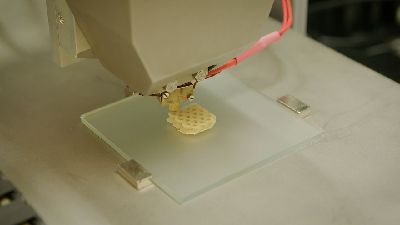 “We zijn nu een koekje van boekweitdeeg aan printen”, legt Mathijs de Schipper, onderzoeker en wetenschapper bij TNO, uit. “Het idee ervan is dat wij dit koekje maken met een bepaalde celstructuur die wij kunnen voorspellen. Vervolgens kunnen wij in de computer gaan kijken hoe het koekje gaat breken, op die manier kunnen wij gaan voorspellen wat de bite van het koekje gaat worden.”