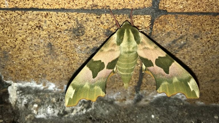 Op de vierde foto zie je een heel grote vlinder - geen mot - met groene vlekken, een wazig rosse kleur er doorheen en een lichtgroen lichaam. Alex Hop heeft een lindepijlstaart gefotografeerd. Deze lindepijlstaart is een echte nachtvlinder en behoort tot de mooiste nachtvlinderfamilie, die van de pijlstaarten. Rupsen van deze lindepijlstaart leven vooral op lindebomen, maar kun je ook ontdekken op iepen, elzen en prunussoorten. Als rups kunnen ze opvallen doordat er op hun achterzijde een mooie blauwe hoorn te zien is. Overigens hebben de meeste rupsen van de pijlstaarten daar zo’n hoorn of pijl zitten, vandaar hun familienaam.