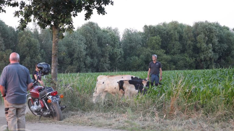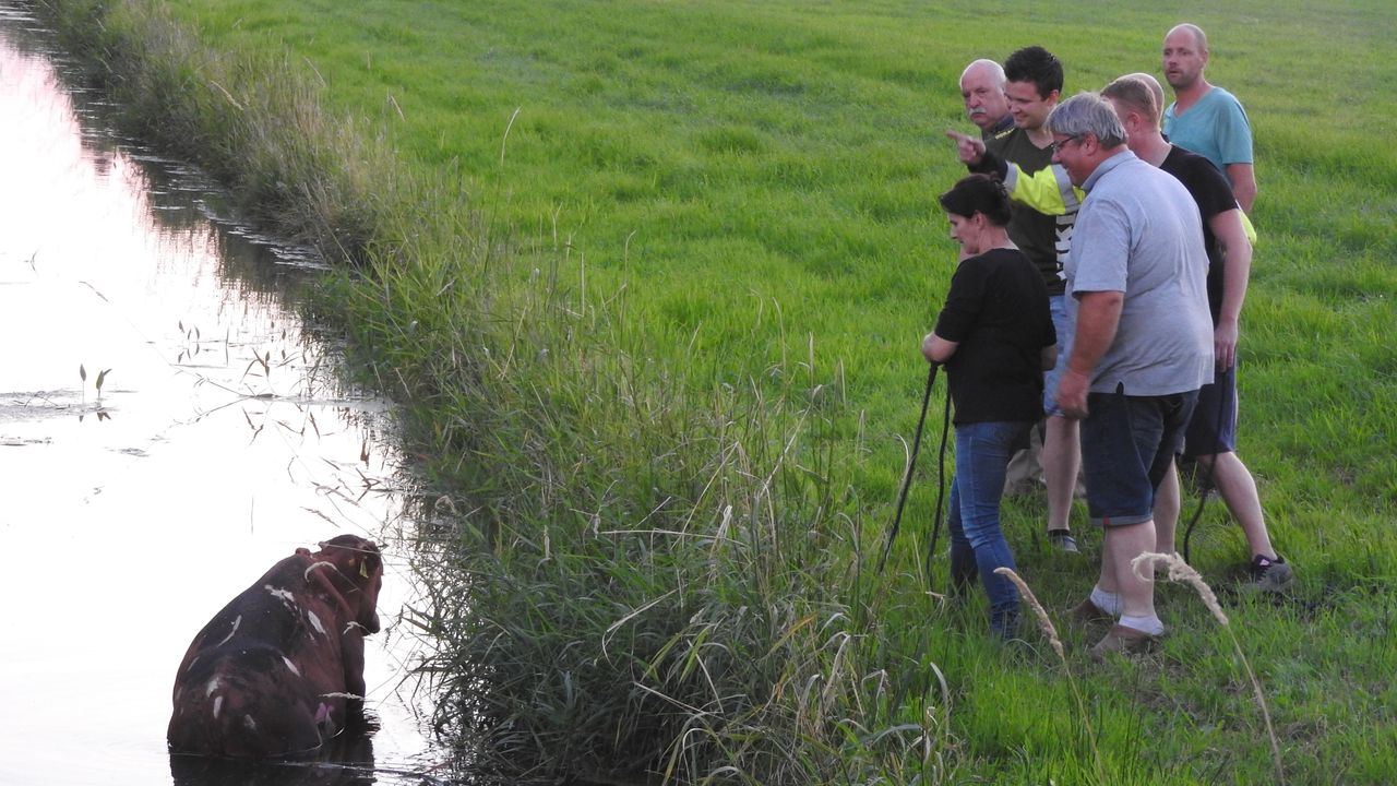 Een paar kalveren met brandwonden renden de sloot in. Omstanders hebben de dieren eruit gehaald.