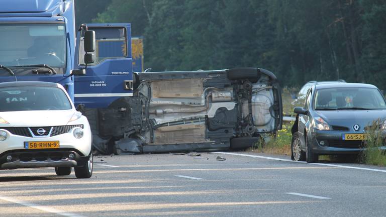Op de snelweg A4 bij Hoogerheide zijn zaterdagochtend een vrachtwagen en twee personenauto's in botsing gekomen. De bijrijder van een van de auto's heeft het ongeluk niet overleefd. Het gaat om een Engelsman.