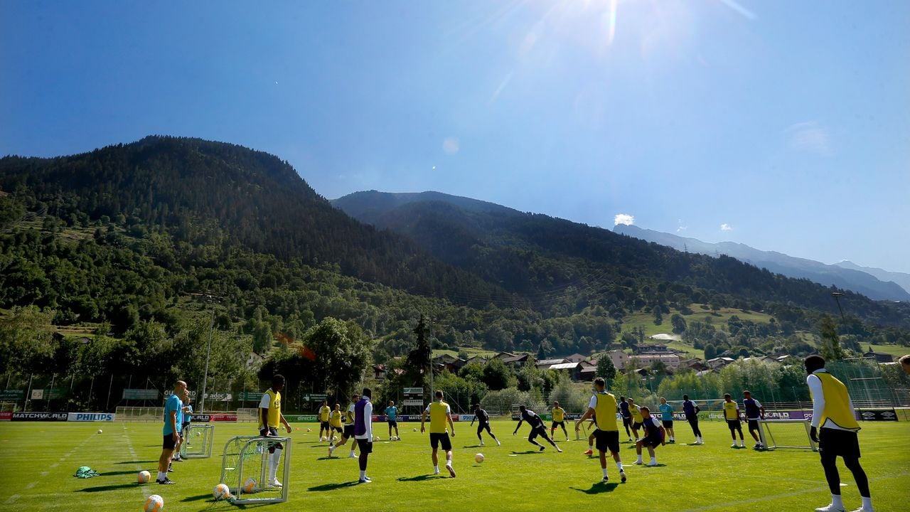Het is niet alleen maar lachen, spelen en 'chillen'. Er wordt door de spelers en trainers ook hard gewerkt in Verbier. Nieuweling Angelino is druk in de weer met gewichten. En Jeroen Zoet traint met de andere keepers hard om klaar te zijn voor het nieuwe seizoen.