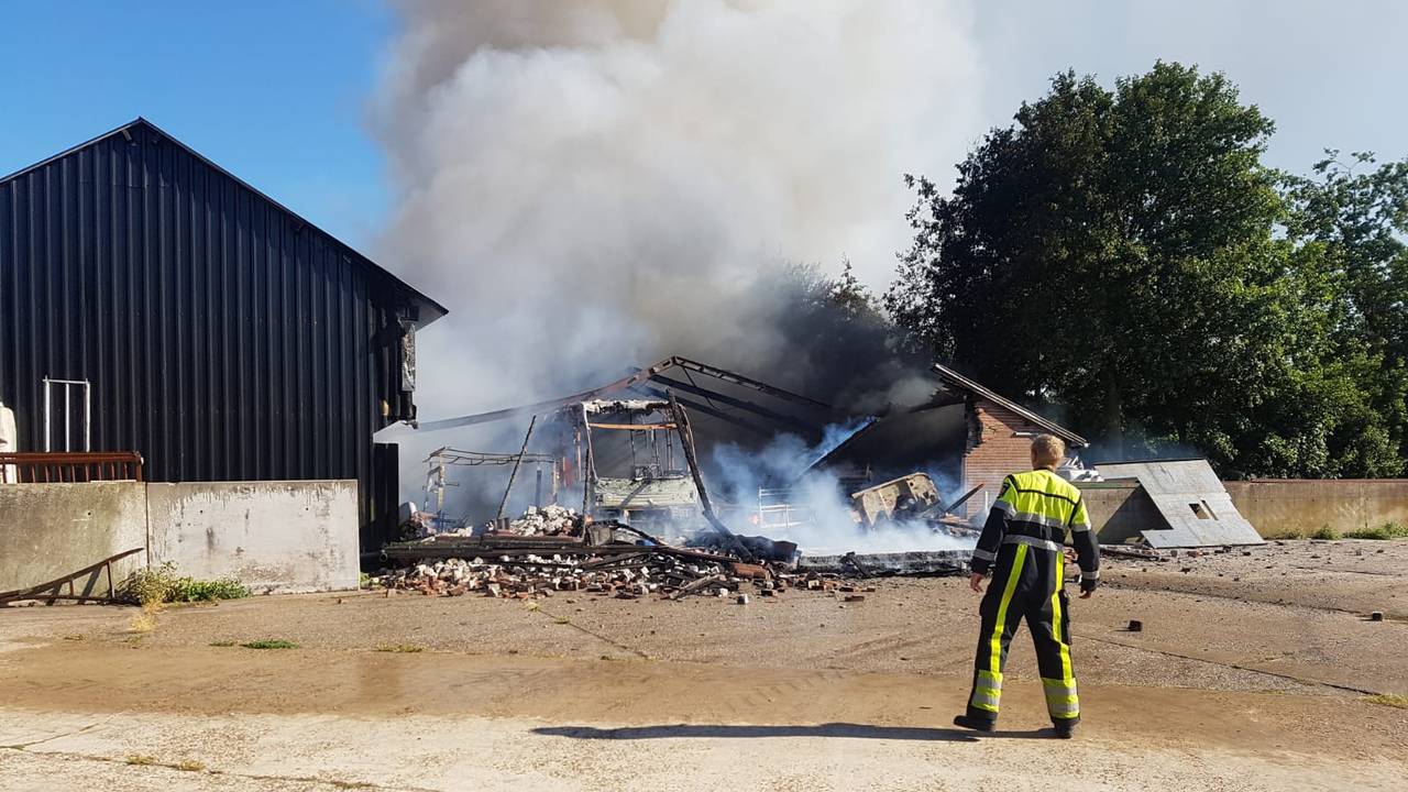 De stal werd gebruikt als opslag. Er stonden legervoertuigen en een camper en er lagen carnavalsspullen. De brandweer is bang dat er asbest is vrijgekomen en houdt mensen op afstand.