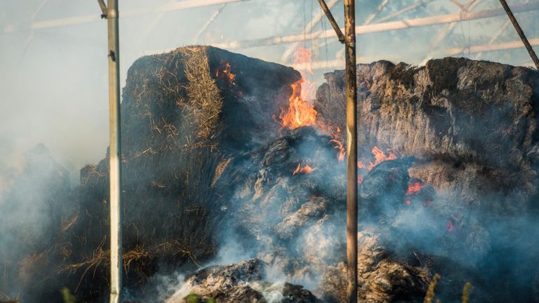 In Eindhoven moest de brandweer ook uitrukken naar een agrarisch bedrijf aan de Doolstraat. Daar vlogen om onbekende reden tientallen hooibalen in brand die net van het land afkwamen. Ze lagen in een soort schuurtje. Dat gebouwtje ging verloren. De brand zorgde voor veel rook.