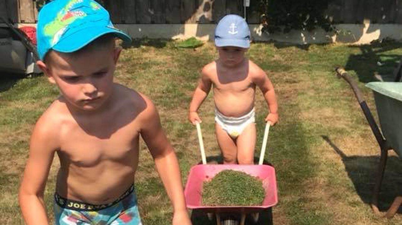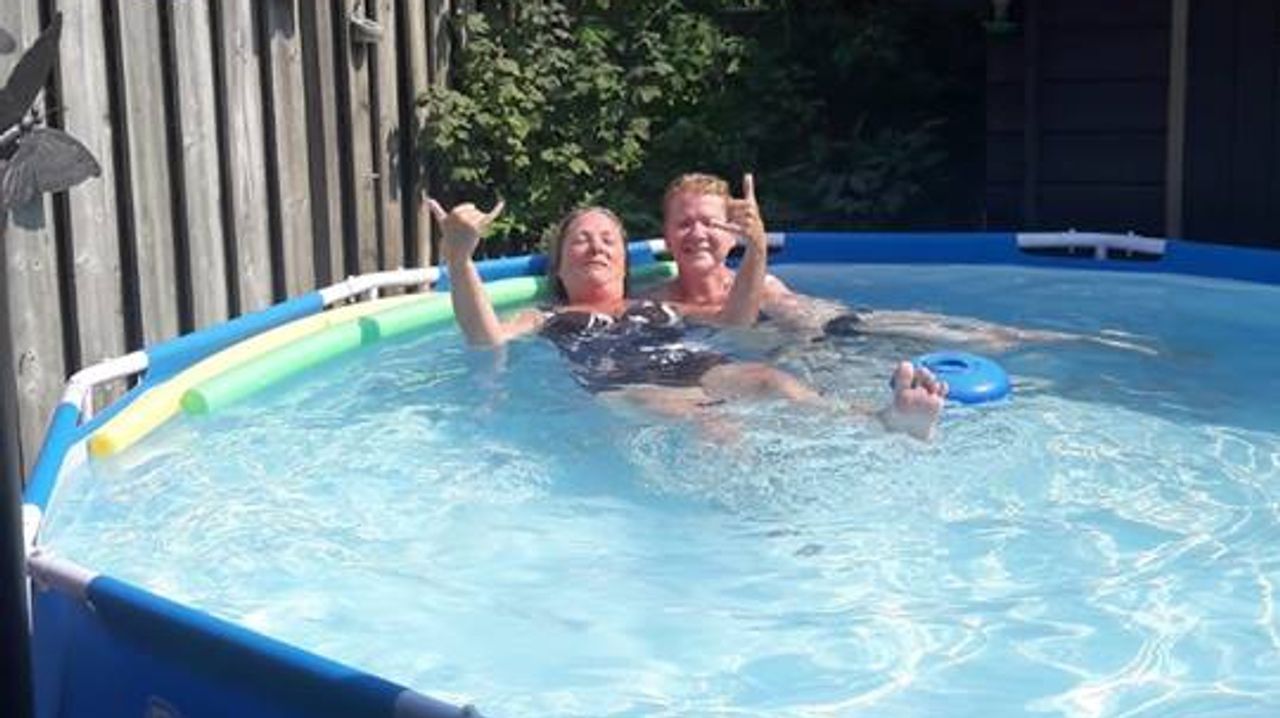 1/4 Collega's Tonnie en Joris genieten / balen enorm van de hitte.