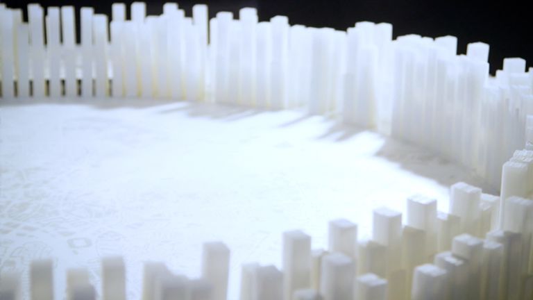 Aan de rand zijn de gebouwen geplaatst. Die kunnen maar liefst 800 tot 900 meter hoog worden. Ter vergelijking: de Eindhovense woontoren De Admirant, nu het hoogste gebouw van Eindhoven, is 105 meter hoog. “In Dubai kunnen ze het al, zo hoog bouwen. Over dertig, veertig jaar is het gemeengoed geworden.”
