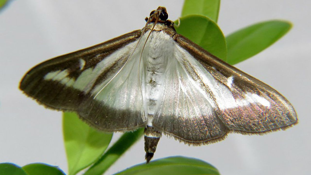 De gewone buxusmot heeft witte vleugels met een donkere rand. De kleur geeft dus geen verschil aan tussen mannelijke of vrouwelijke buxusmotten.