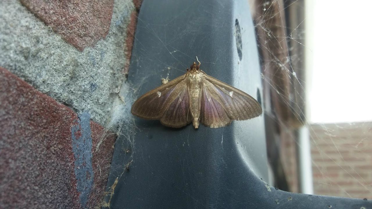 Op de foto die ik kreeg van Martien Pennings zie je een donkere nachtvlinder en Martien heeft er de naam bij opgezocht. Het gaat om een buxusmot. Maar Martien kent alleen witte exemplaren en vroeg zich dus af of er inderdaad een donkere vorm is. Het antwoord is ja, er is inderdaad een donkere - helemaal donkerbruine - buxusmot, maar die is een stuk zeldzamer dan de witte.