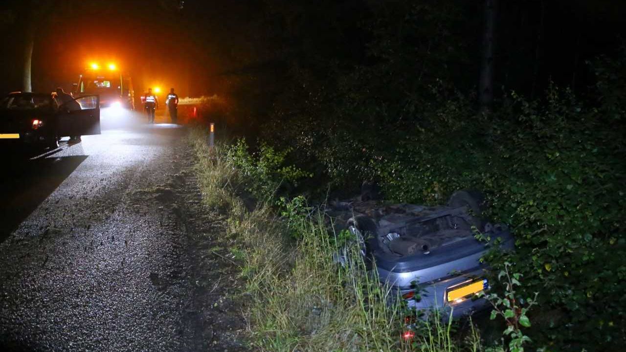 Een auto is in de nacht van maandag op dinsdag over de kop geslagen en in een greppel beland op de Meester van Hasseltweg in Vessem. De bestuurder zei tegen mensen ter plaatse dat hij moest uitwijken voor een ree.