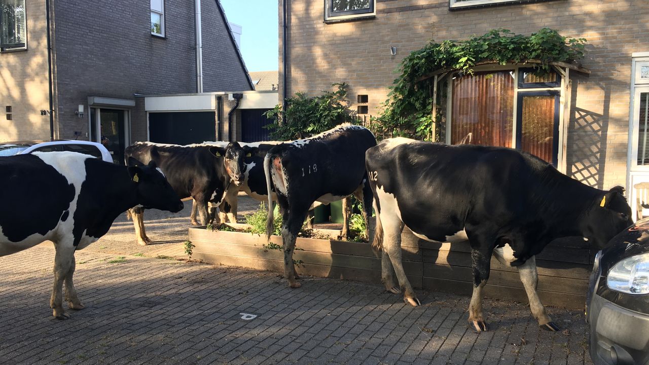 Natuurlijk was de hele buurt in rep en roer. Koeien op de oprit, koeien bij de kliko's, koeien in de voortuin. De politie ging samen met de bewoners op onderzoek uit en achterhaalde wie de eigenaar van de koeien was.