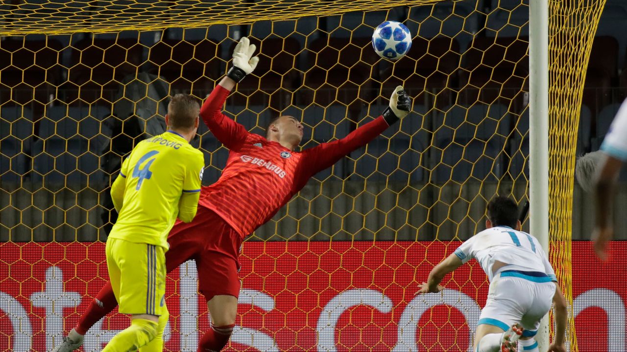 '17 Na de 1-0 is het niet dat PSV meer grip op de wedstrijd krijgt. De thuisploeg is weer zeer gevaarlijk, de Eindhovenaren komen met de schrik vrij. Doelman Jeroen Zoet brengt redding, Daniel Schwaab kopt de bal vervolgens van de lijn. In de rebound wordt een schot van de Wit-Russen geblokt.