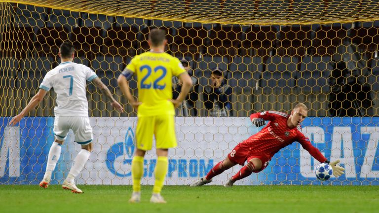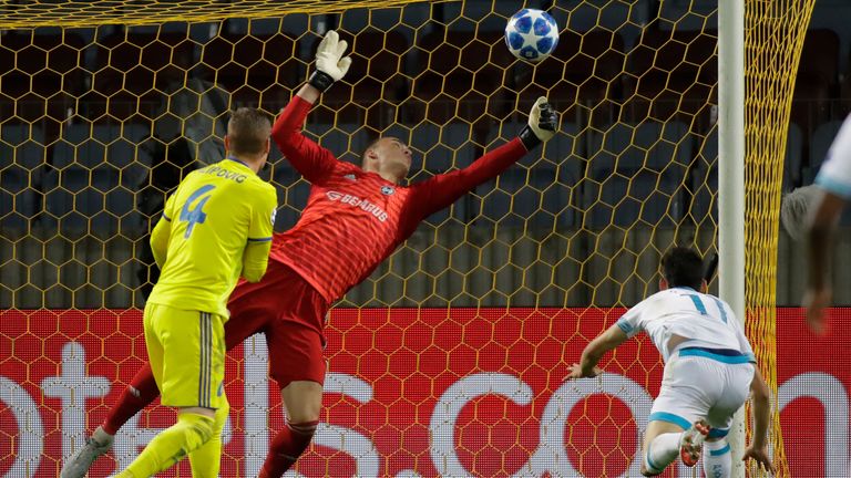 3. Hirving Lozano lijkt, direct na de 1-1, PSV op voorsprong te zetten. Maar keeper Denis Scherbitski houdt zijn ploeg op de been