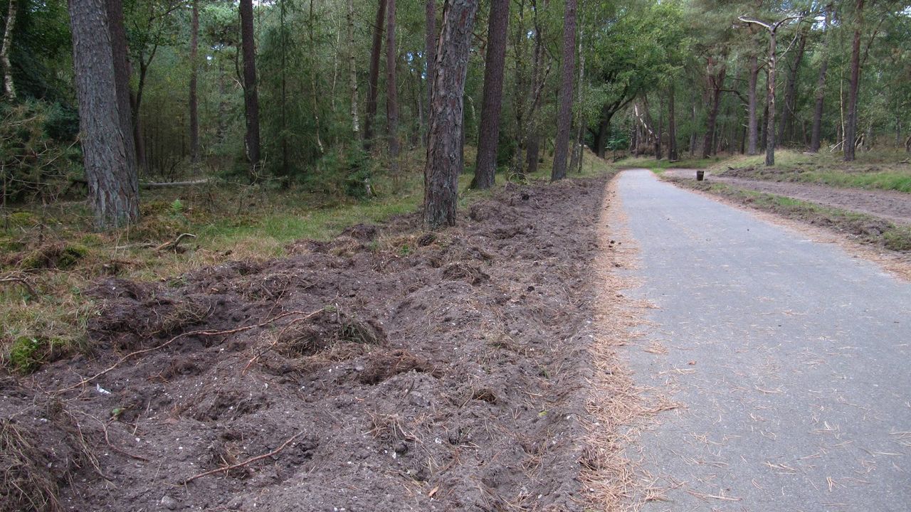 Bert van Ganzewinkel fietste over de Veluwe en zag daar veel door zwijnen omgeploegde bermen langs fietspaden. Hij vroeg zich af waarom juist langs fietspaden? Dit heeft alles te maken met het rijkere bodemleven langs fietspaden. Langs fietspaden, maar ook langs andere wegen, is de vochthuishouding meestal hoger dan op plekken verder weg. Regenwater stroomt in de regel van de verharde lagen naar de bermen en dus wordt die directe omgeving erg vochtig. Hierdoor ontstaat er ter plekke een betere vegetatie en daardoor een dichter wortelstelsel. Het gevolg daar weer van is dat het bodemleven veel rijker wordt en dus is er daar meer voedsel te vinden voor onze zwijnen.