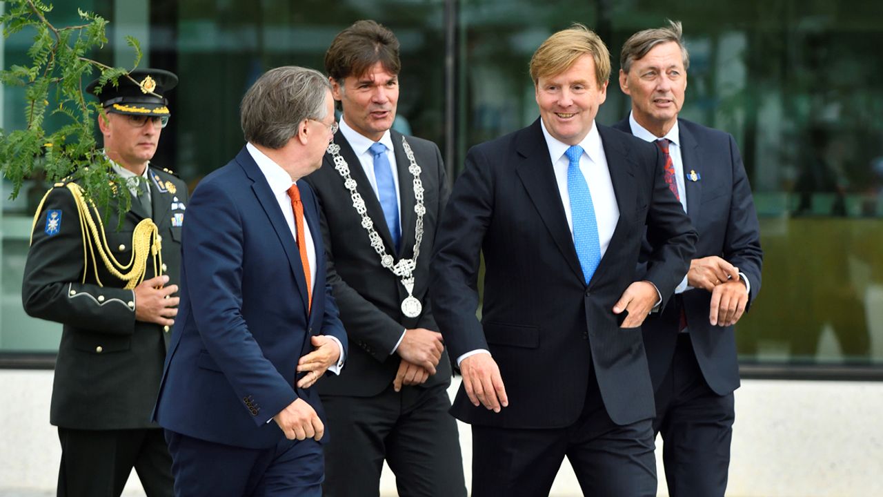 Beatrix deed het en nu doet Willem-Alexander het: Vrouwe Justitia onthuld bij opening gerechtsgebouw