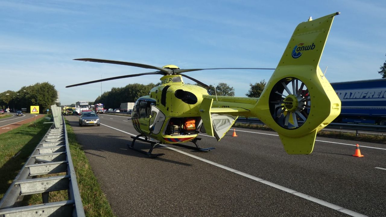 Vanwege de ernst van de situatie landde een traumaheli op de snelweg. De hulpdiensten bevrijdden de mensen die in het bestelbusje zaten. Hoe het ongeluk kon gebeuren, is niet bekend.