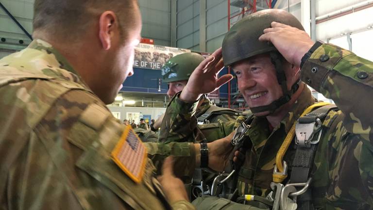 “We kijken terug naar Market Garden. We springen op historische grond. Tijdens het springen denk ik daar helemaal niet aan. Soms denk je wel dat het nu al druk en nu al spannend is. Maar stel je voor dat ook nog een keer je vliegtuigen onder vuur liggen en je weet dat er beneden iemand op je staat te wachten. Maar op het moment van springen heb je daar geen tijd voor. Dan ben je alleen maar bezig met veilig landen.”
