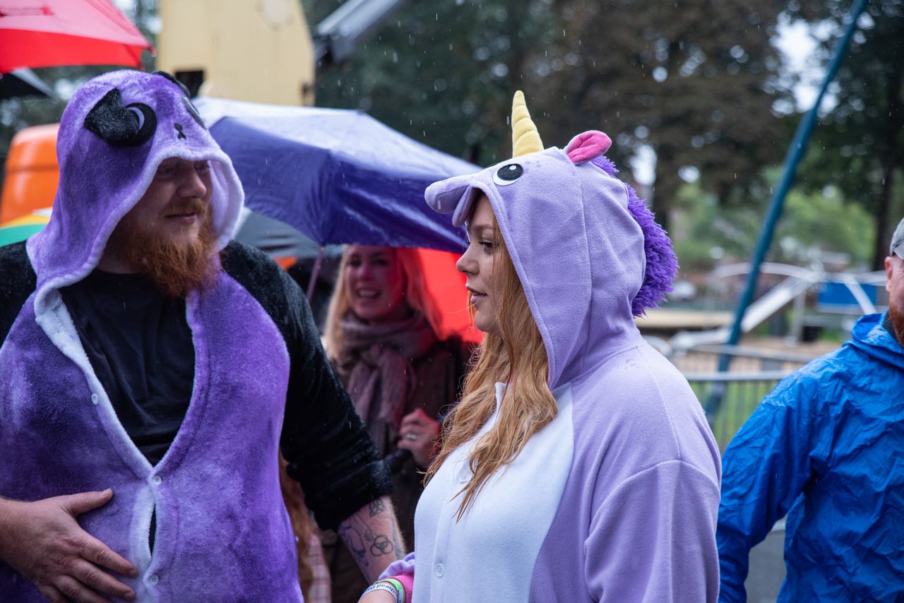 Ze maken veel werk van hun outfits. Het thema dit jaar is 'onesies' en dat heeft onder geresulteerd in een roodharige eenhoorn, een paarse beer en een kardinaal met een vurige rode baard.