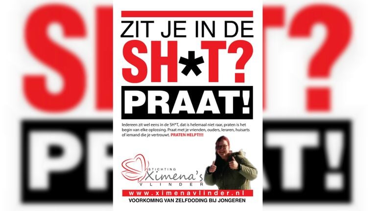 De stichting heeft posters gemaakt voor scholen en mensen die met jongeren werken. Op de affiches staat dat het niet erg is als je het leven soms klote vindt of een keer in de shit zit, zolang je er maar over praat. Xi mena’s Vlinder heeft ze donderdag opgestuurd naar verschillende scholen in Brabant. “Ik heb vooraf zo’n 15 scholen benaderd en die waren bijna allemaal positief.”