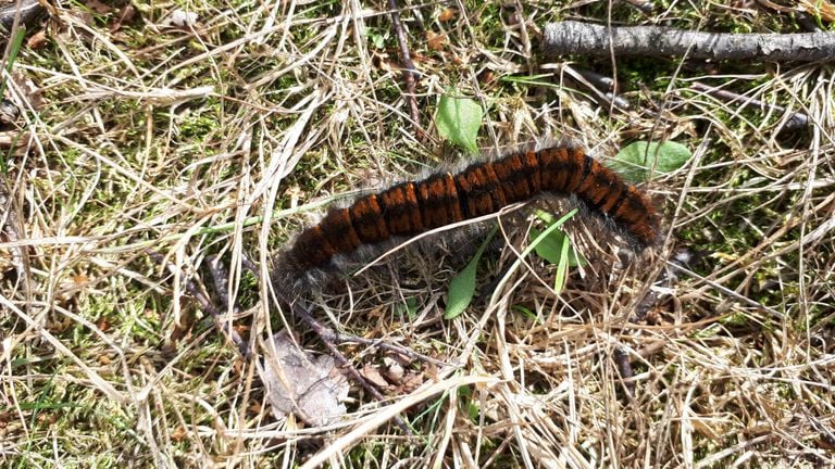 Op de foto van Albert van Kessel zie je een mooie zwarte rups met harige oranje banden. Volgens mij is dit de rups van de veelvraat. De veelvraat is een dagactieve nachtvlinder. Die behoort tot de grote familie van de spinners. De familie van spinners bestaat uit wollige, behaarde en zwaargebouwde vlinders. Ze hebben geen roltong. Mannetjes van de veelvraatvlinder vliegen overdag, maar zo snel dat ze nauwelijks waarneembaar zijn. Je ziet slechts een schim. De vrouwtjes zitten meestal in de braamstruiken of in het gras. De rupsen van de veelvraat stoppen vlak voor de winter met vreten, maar daarvoor hebben ze zich dan behoorlijk vol gegeten. Ze zoeken een plek op de grond - tussen bladeren of mos - om te overwinteren. Na de winter, als de rups voldoende opgewarmd is door de zon, gaat de veelvraatrups zich pas verpoppen.