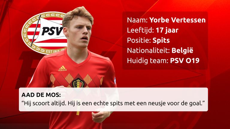 “Yorbe Vertessen is een Belgische spits die altijd scoort. Hij is een echte spits met een neusje voor de goal en in de zestien is hij dodelijk.” Volgens De Mos is Vertessen nog redelijk onbekend bij het grote publiek, maar daar gaat verandering in komen. “Natuurlijk, er kan nog veel gebeuren. Maar ik heb hem doelpunten zien maken, die ik nog nooit heb gezien. Ik zie Vertessen en Ihattaren echt als toekomstige spelers van PSV 1.”
