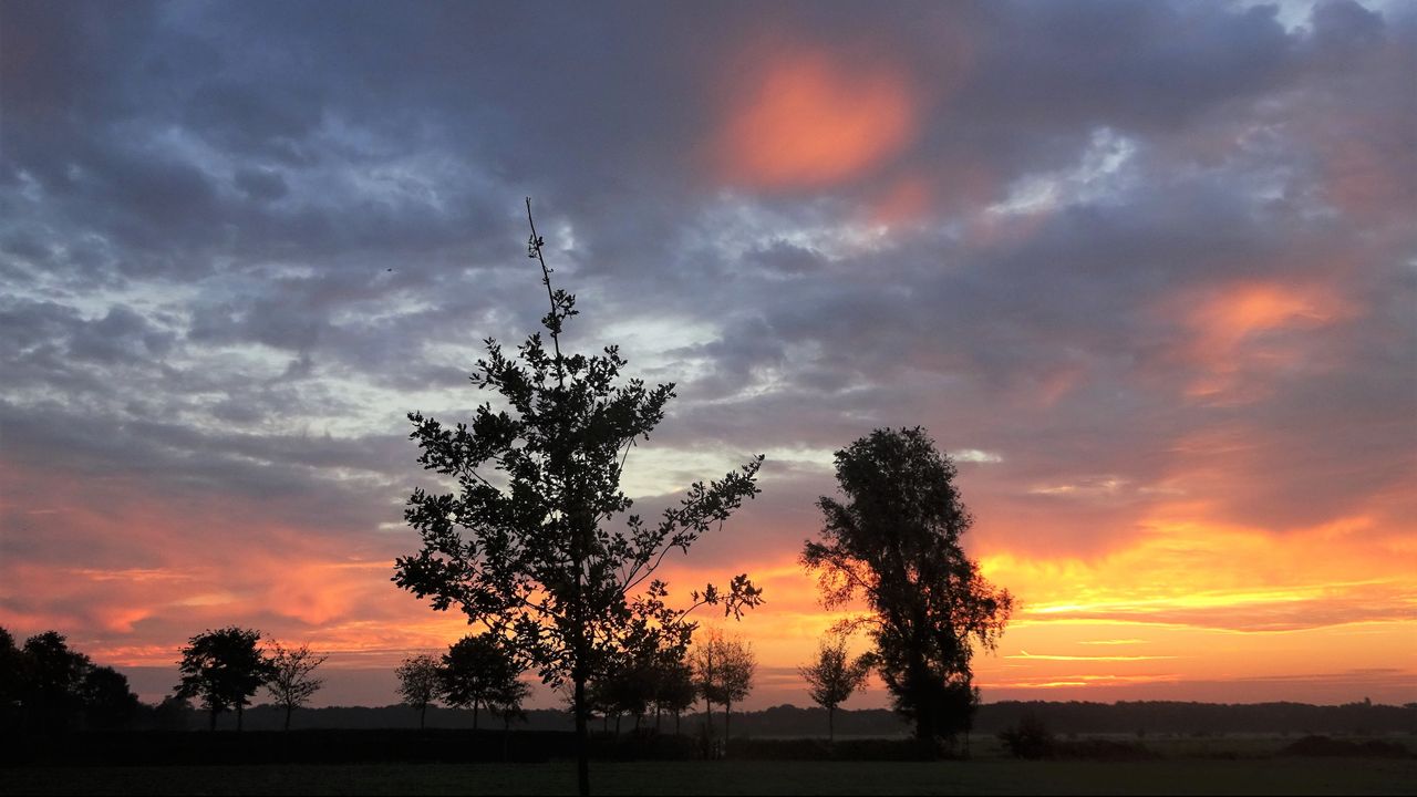 Dinsdagochtend leverde de natuur mooie plaatjes op. Fotografen in Brabant stuurden foto's in van de lucht die rood kleurde tijdens de zonsopgang.