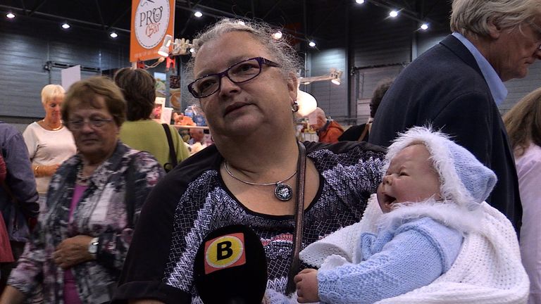 Jannie loopt met haar levensechte pop over de beurs. "Dit is Timmie. Ik heb Timmie net gekocht." Timmie is niet van een echte baby te onderscheiden. Zelf heeft Jannie al twaalf van deze poppen thuis staan. Maar wie denkt dat zo'n pop goedkoop is, heeft het mis: de pop van Jannie kost tweehonderd euro en is volgens haar elke euro waard. "Het voelt lekker als ik een rotdag heb en als ik er naar kijk voelt dat heerlijk. De poppen geven mij liefde en soms praat ik met hen."
