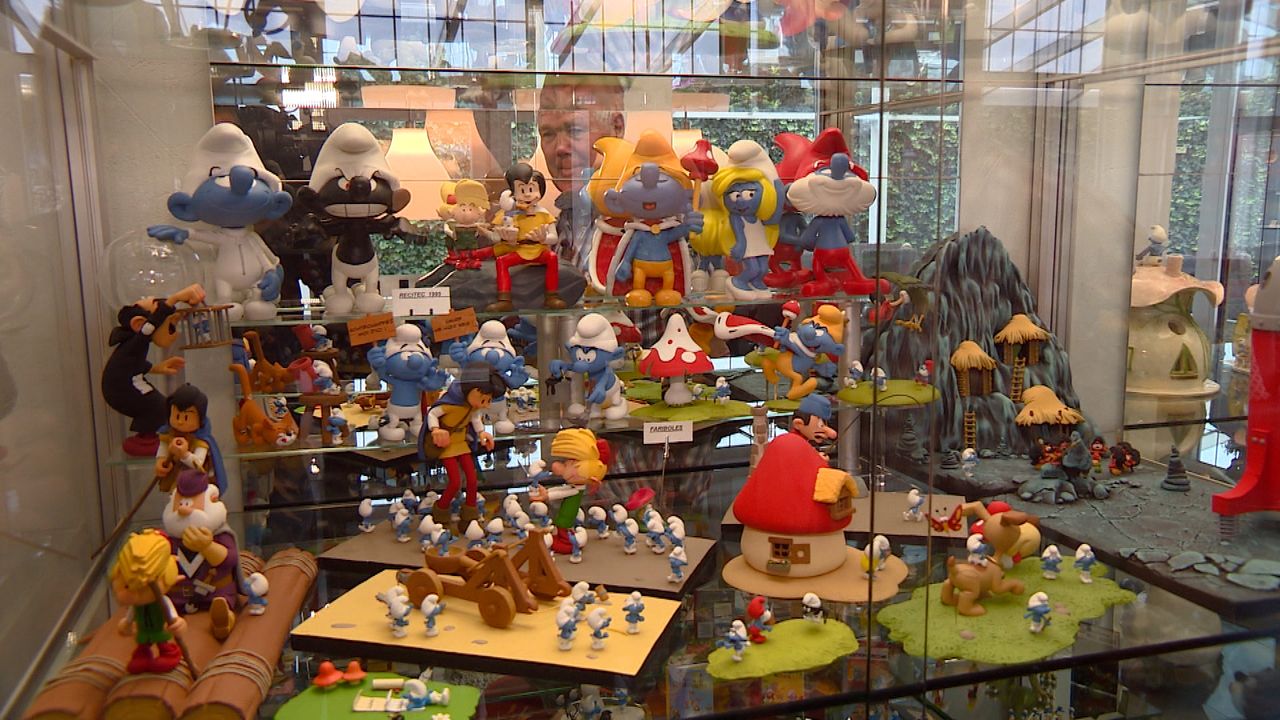 In grote vitrinekasten in de woonkamer staan de meest unieke stukken. Beeldjes waar soms maar een paar honderd, soms zelfs maar tientallen van gemaakt zijn. Maar het echte smurfenmuseum is gevestigd in een aparte kamer. Honderden poppetjes staan keurig op een rij. Verder een wand vol boeken, in alle talen. Smurfenplaten, singletjes, bekers, horloges, een smurfentol. Zelfs smurfentoiletpapier, voor wie zijn billen wil afvegen aan een Smurf.