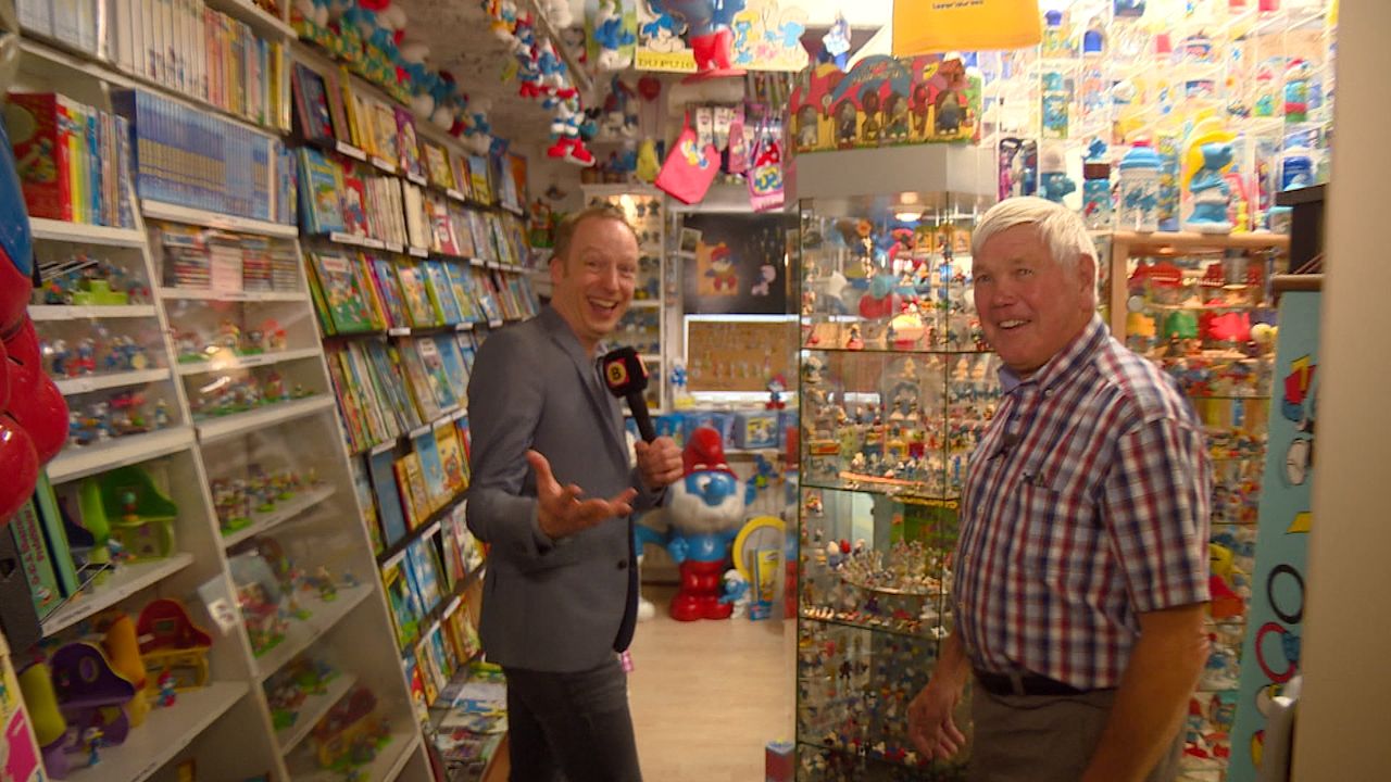 Een soort smurfenwinkel. "Maar er is niets te koop", verduidelijkt Marius. Zestig jaar zijn de Smurfen nu. "Maar dit gaat nooit verloren. Zo'n historie, dat is toch leuk?"