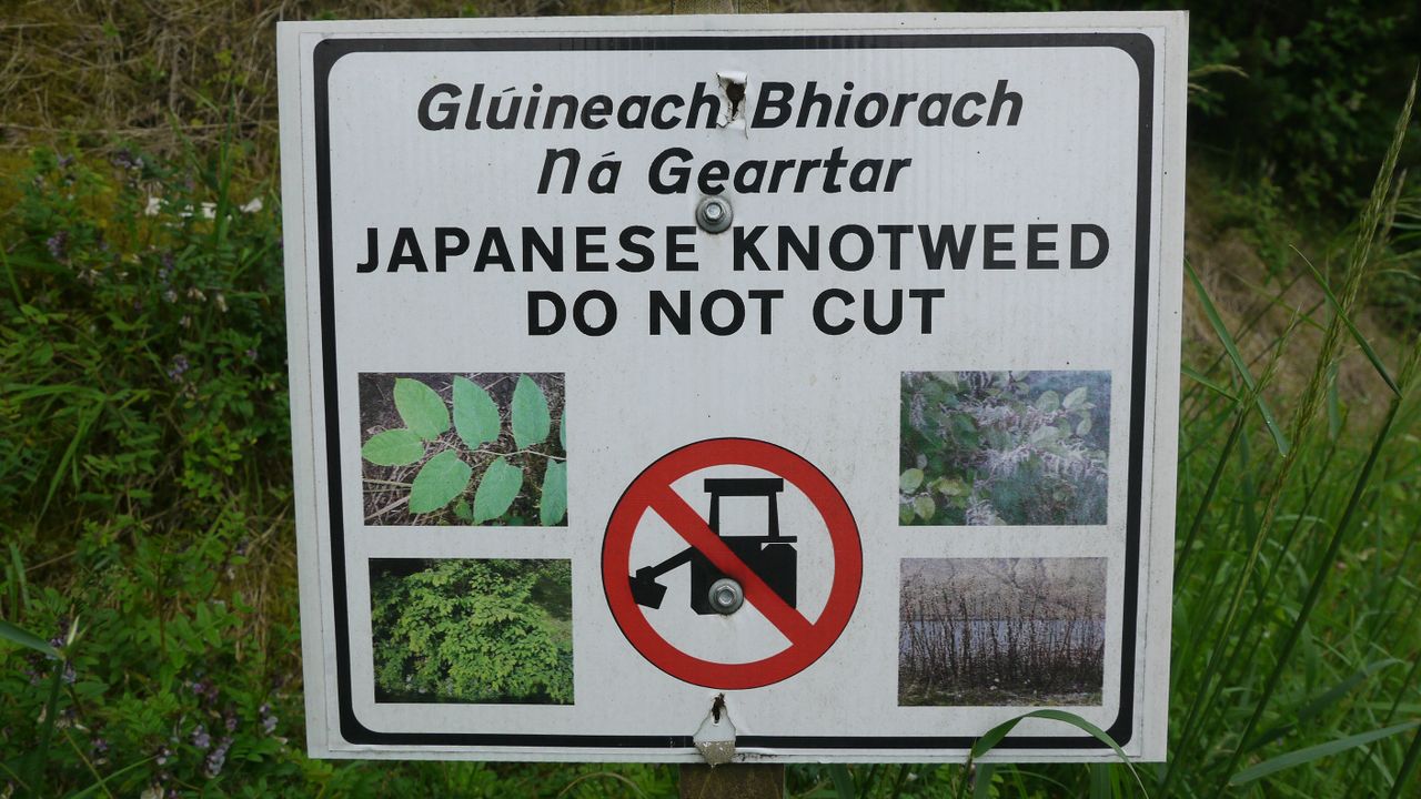 Op de foto van Jan Blaas staat een waarschuwingsbordje uit Ierland over de Japanse duizendknoop. Ik snap dit bordje best wel, want als mensen deze planten gaan knippen of maaien gaat de verspreiding nog verder. Hoe is deze plant dan in hemelsnaam hier terechtgekomen? Dat is de schuld van de Duitse arts Von Siebold, die in de negentiende eeuw de plant meenam vanuit Azië naar Nederland. Hij begon in Leiden een kleine tuin met exotische planten. De arts beschouwde de plant als een van zijn mooiste planten, met zijn felgroene bladeren en witte bloemetjes. Aangestoken door hem namen menige tuinliefhebbers uit andere delen van Europa de plant ook de grens over, onder meer naar Engeland. Daar zijn ze nu niet blij mee, want vanwege de enorme groeikracht - hij wordt soms wel vier meter hoog - heeft de Japanse duizendknoop in Engeland veel schade aangericht. Zoveel dat grond met de plant niet meer vervoerd mag worden zonder een speciale vergunning. Zo ook in Ierland.