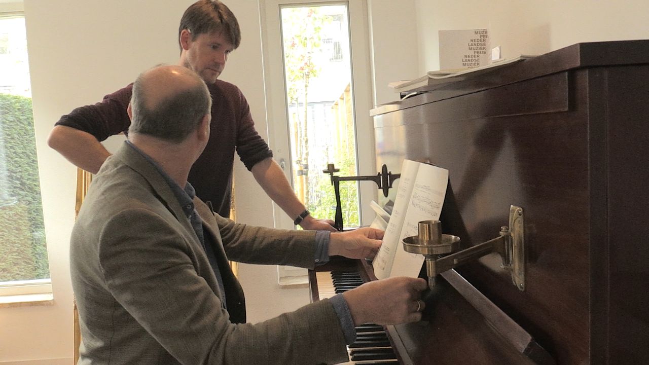 Hij vertelt het allemaal tijdens een repetitie voor het concert in de kleine studio in zijn achtertuin. Achter de piano zit zijn begeleider Hans Eijsackers.