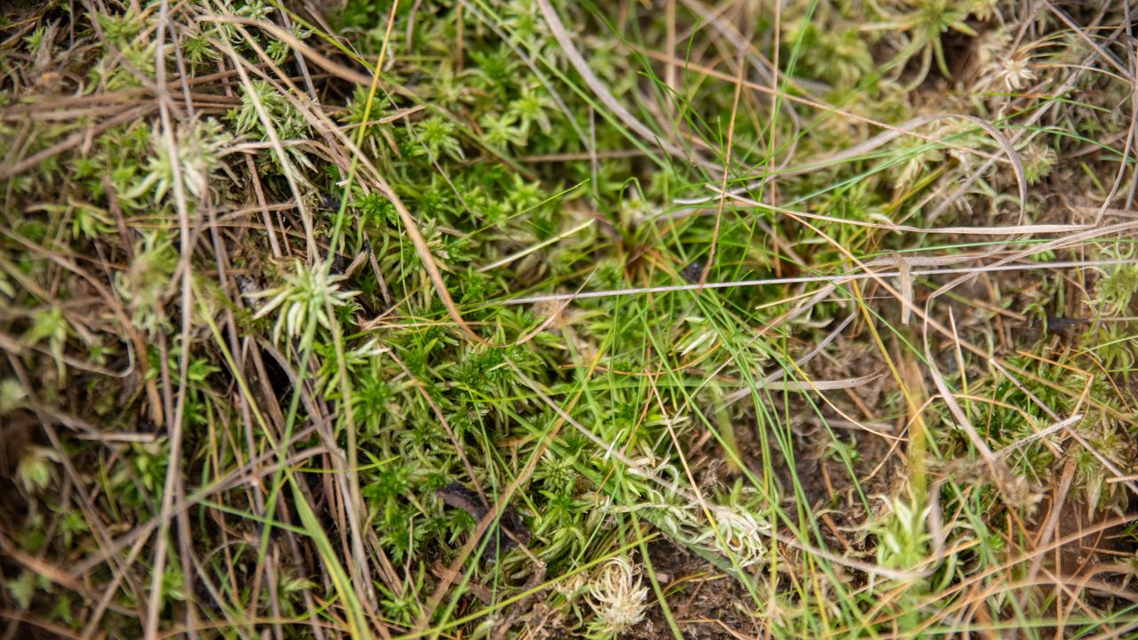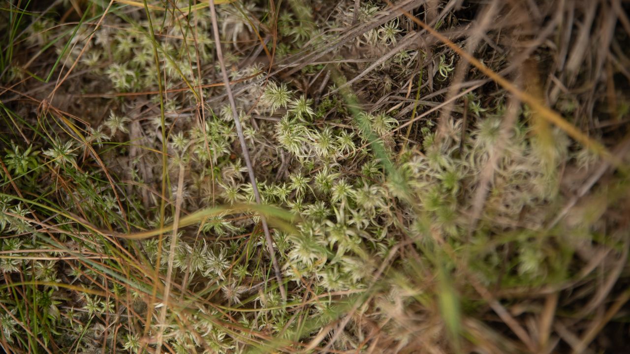 Door het weinige water kleurt het veenmos wit. Mos bestaat voor tachtig procent uit water. Als het dus uitdroogt verliest het zijn kleur. Deze mossen zijn dus al dood.