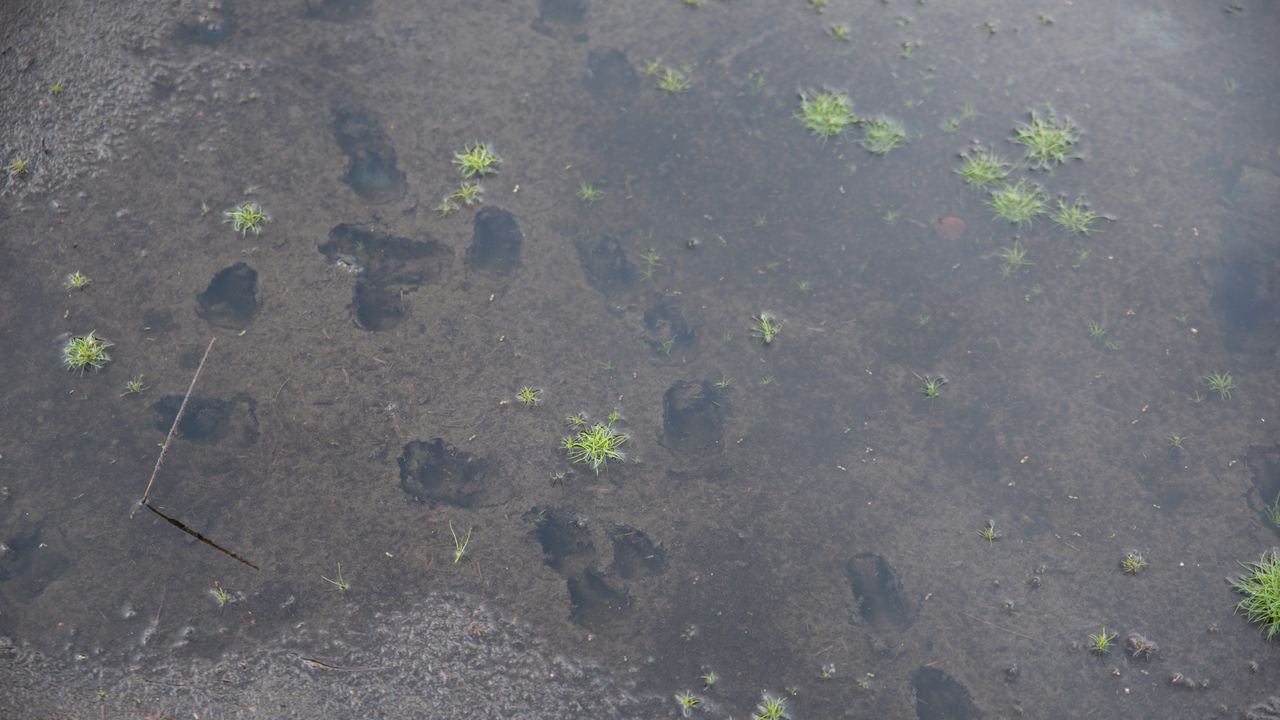 De dieren die in het bos leven hebben ook last van de droogte. Bij ondiepe vennen drinken ze altijd. Nu dat er een aantal vennen in het bos droog liggen, blijven er niet veel ondiepe vennen over waar ze naartoe kunnen. Gelukkig kwamen we een poel met een aantal kleine plasjes tegen waar dieren toch nog konden drinken.