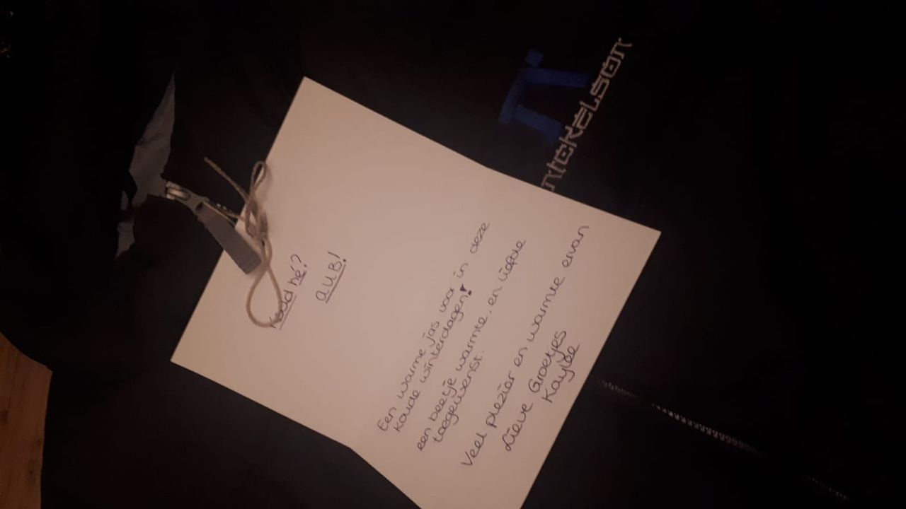 Aan de twee jassen werd een kaartje gespeld met de tekst: ‘Koud hè, een warme jas voor in deze koude winterdagen. Een beetje warmte en liefde toegewenst’. Kaylee: “We positieve en hartverwarmende reactie gekregen. Maar ook tips dat het misschien beter is om de jas of te geven bij een daklozenopvang, zodat de jas niet nat wordt.” Daar is Kaylee het ook mee eens, maar: “Beide manieren zijn prima.”