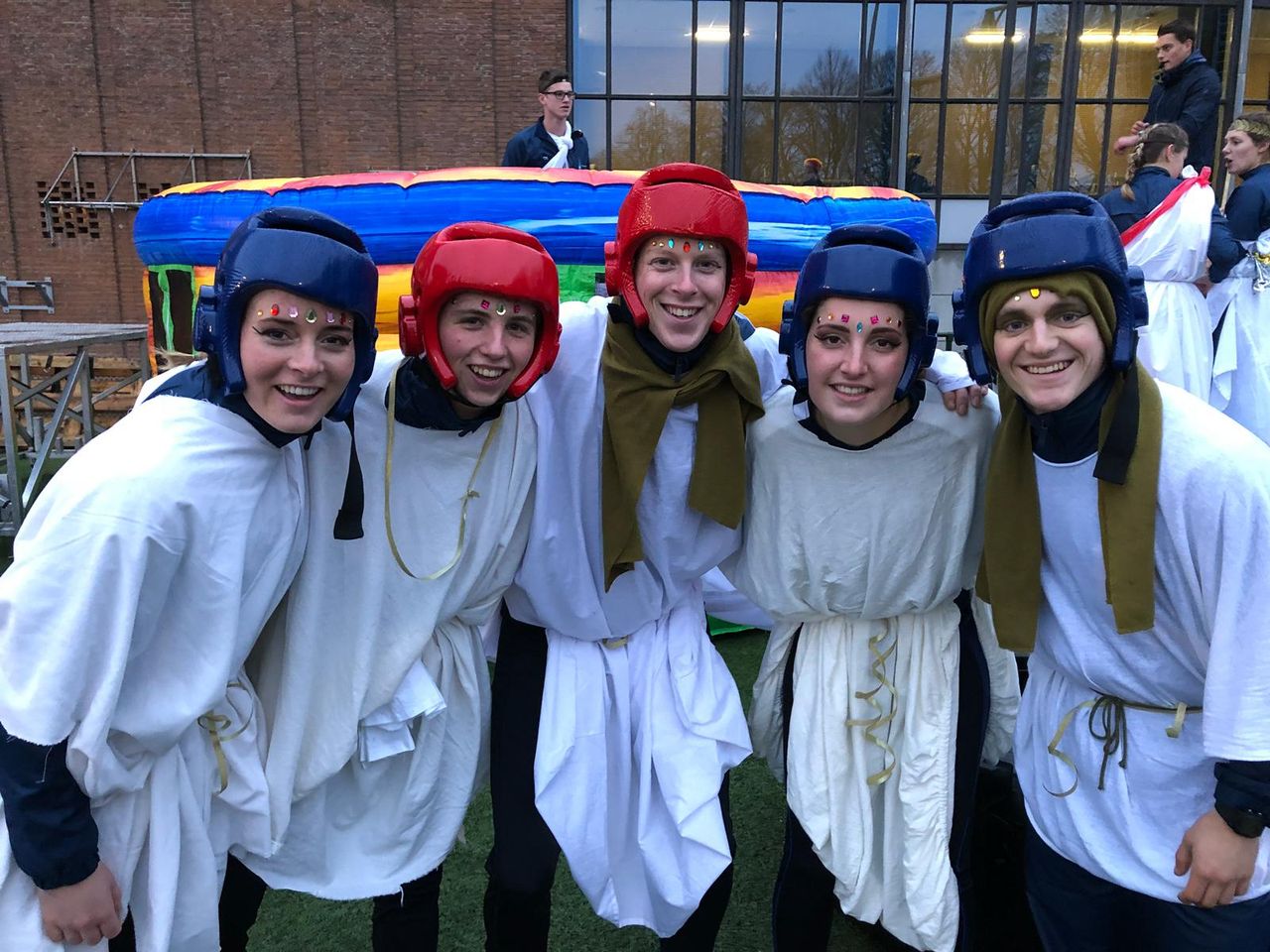 De feestvreugde begon met een sportdag. De cadetten waren opgeroepen om verkleed deel te nemen en dat lieten ze zich geen twee keer zeggen. Het thema van de festiviteiten? Asterix en Obelix. "Ik heb mijn best gedaan een Romeinse outfit aan te trekken", vertelt commandant Joost Doense. "Als er hard gewerkt wordt, moet er ook hard gespeeld worden."