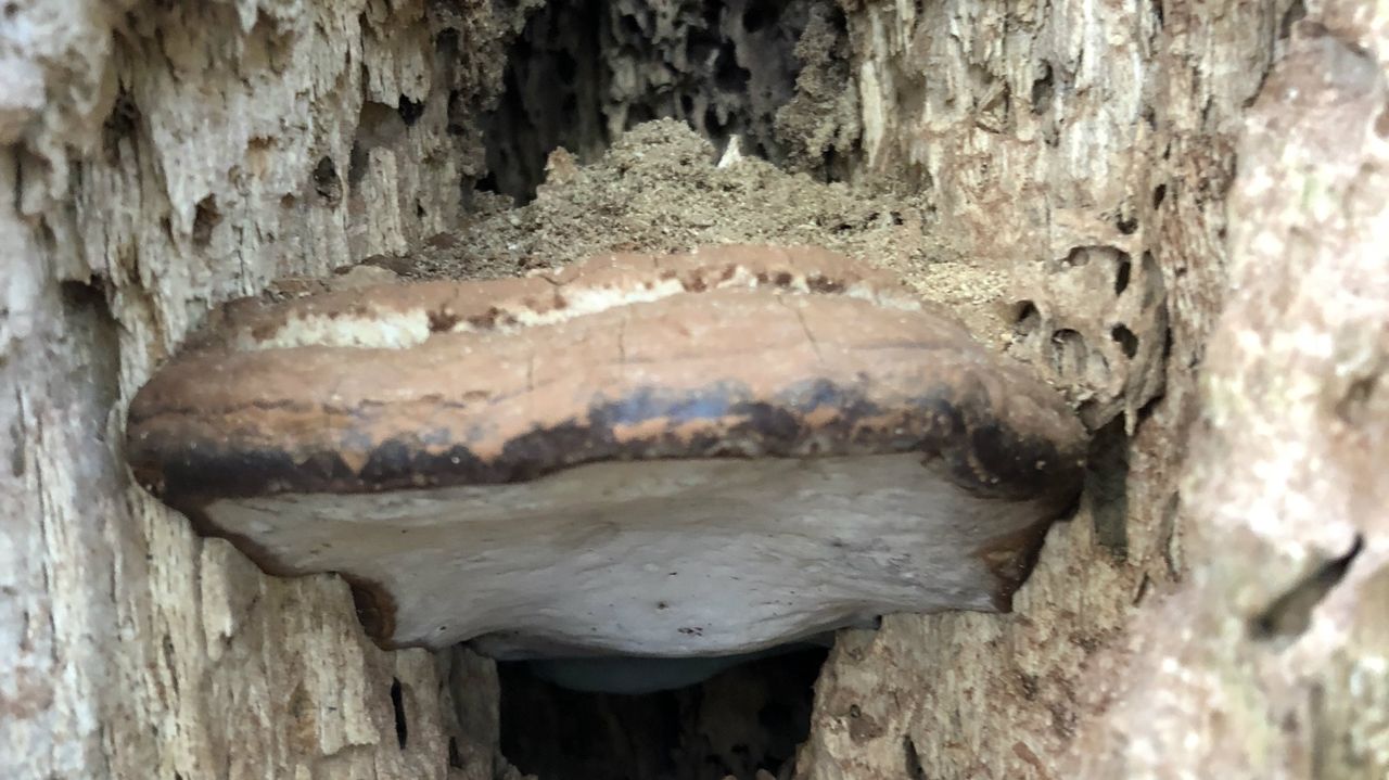 'Buuf' Adeline Besselink ziet maar weinig paddenstoelen en dat klopt. Wellicht zijn er de komende tijd wat meer nu er ook wat meer vocht is gevallen en de temperaturen redelijk zijn. Wel heeft ze een foto gestuurd van een paddenstoel die ze wel tegenkwam en ze vraagt zich af wat dit voor paddenstoel is. Op de foto zie je een boomzwam, die bruin van boven is en wat licht aan de onderkant. We hebben hier dan ook te maken met een platte tonderzwam. Deze boomzwam kun je het hele jaar tegenkomen en leeft in eerste instantie als een parasiet op een levende boom. Daar veroorzaakt deze platte tonderzwam witrot. De boom gaat dan langzaam rotten en dus dood. Als de boom dan dood is gegaan, blijft deze boomzwam leven op die dode boom als saprofyt.