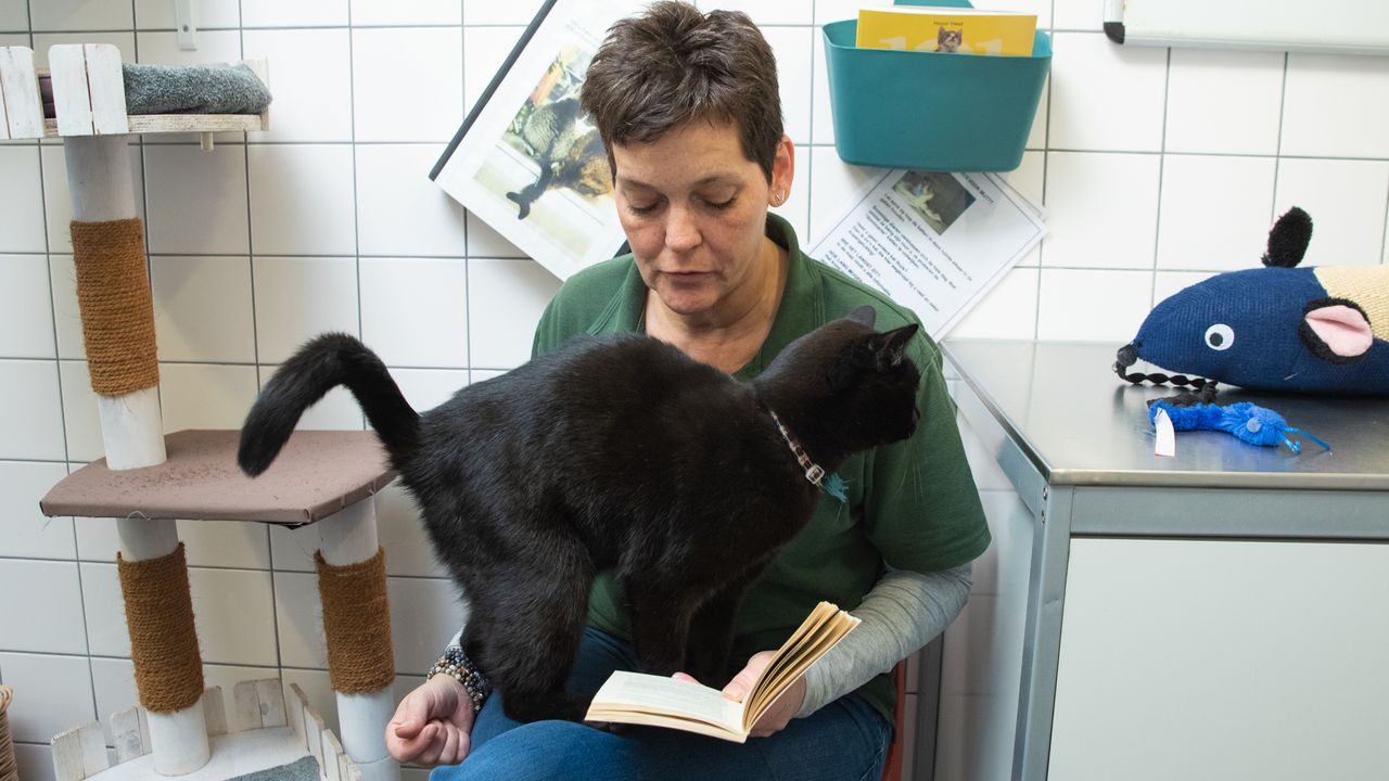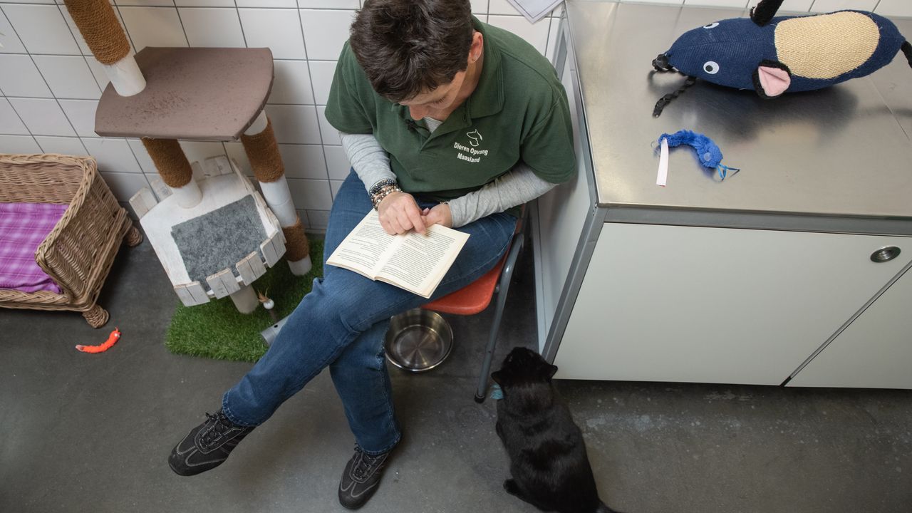 De honden en katten worden nu elke dag vijftien minuten voorgelezen. Elke hond krijgt minimaal één keer per dag een verhaaltje te horen en ook in elke groepskamer met katten leest dagelijks een van de vrijwilligers iets voor. In iedere ruimte hangt een mandje met boeken. Van thrillers tot aan kinderboeken, er ligt van alles tussen. "Het soort boek maakt voor de dieren niet uit. Het gaat er meer om dat je op een bepaalde toon leest. Dat is wat de rust teweeg brengt", legt Sandra uit.