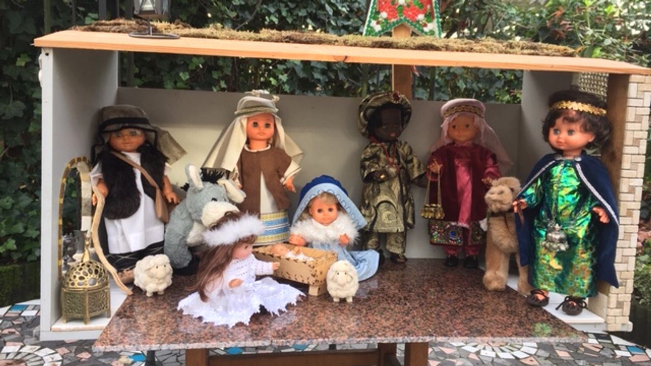 De speelgoedpoppen van Wilhelmien Cozijnsen zijn tijdelijk verhuisd. Van het poppenhuis naar de kerststal.