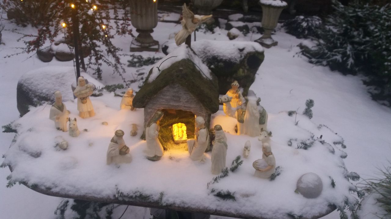 Iedereen hoopte er op, een witte kerst. Maar dat gaat 'm helaas niet worden. Afgelopen zaterdag was het heel even wit in Brabant. Dit bijzondere moment is door de maker van de kerststal in de sneeuw meteen vastgelegd.