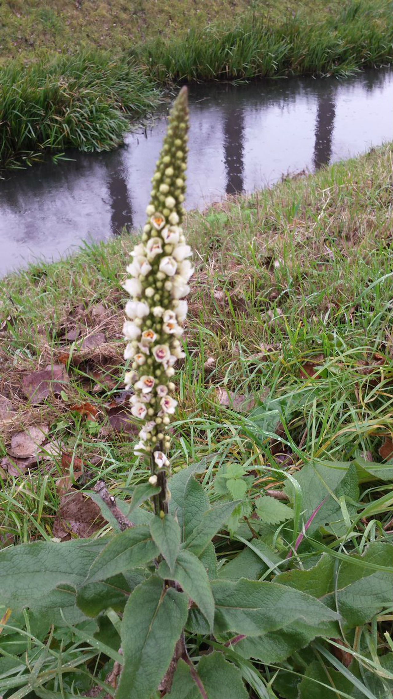 Op de foto van Annie van Gansewinkel zie je een plant met een volle aar met witte bloemen. Dit is de melige toorts. Deze bijna 150 centimeter groot wordende plant - ook wel witte toorts genoemd - is een tweejarige plant die tot de helmkruidfamilie behoort. Andere familieleden zijn de prachtige stalkaars, de koningskaars en de vlinderstruik, de Buddleja. In Nederland is deze melige toorts vrij zeldzaam. Hij komt vooral voor langs spoorlijnen, maar gedijt ook goed op locaties met losse en droge - niet te voedselrijke - bodems.