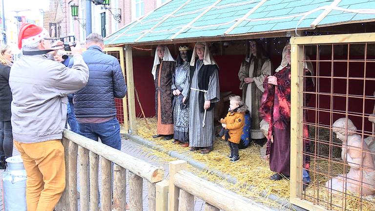 Tussen de vele bezoekers ook burgemeester Miranda de Vries. Ze maakt een praatje met de drie koningen en Jozef en bekijkt het kindeke: "Een heel rustige baby Jezus hebben we hier", zegt ze terwijl ze over zijn houten bolletje aait. De stal vindt ze 'superleuk'. Maar ze vindt het ook best jammer dat er geen levende dieren meer zijn. "De één vindt het jammer en de ander zegt: goed zo. Ik hang er een beetje tussen. Ik begrijp dierenwelzijn. Maar ik vind het ook wel heel schattig als die dieren hier lopen."