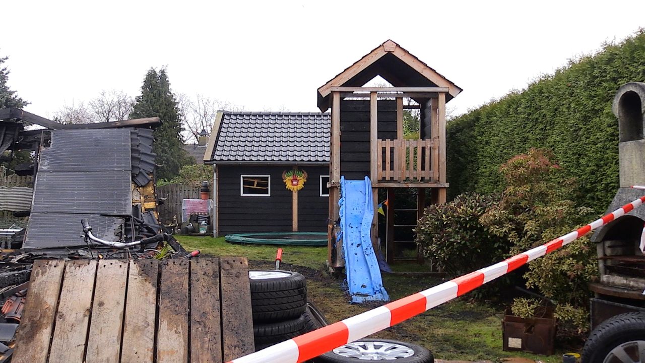 De schuur bij het huis aan het Sint Maartensplein is in vlammen opgegaan door de explosie. "Hij had een mooie houten schuur daar staan", legt buurvrouw Marion Bruijns uit.
