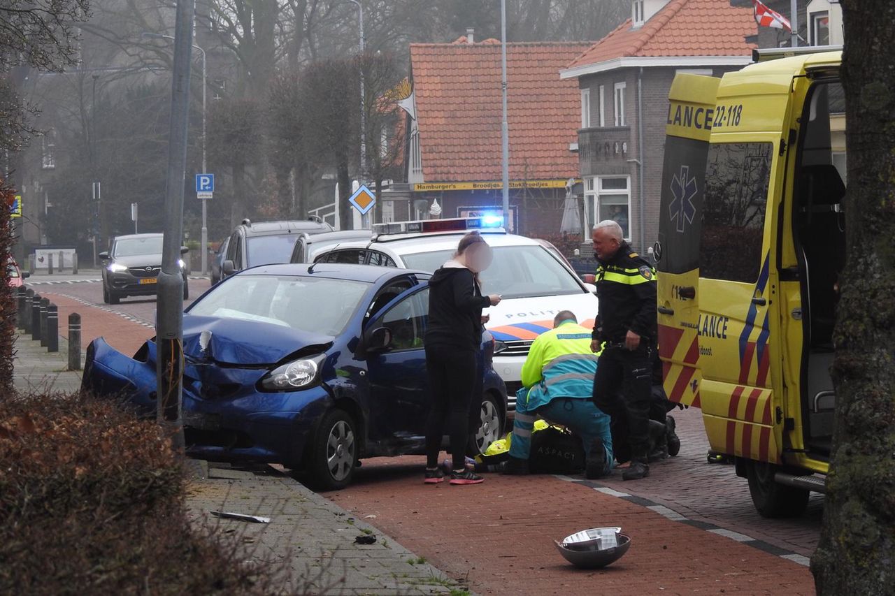 Doordat de wagen van de vrouw in de flank werd geraakt, kon ze alleen nog maar uitwijken, waardoor ze tegen de lantaarnpaal reed.