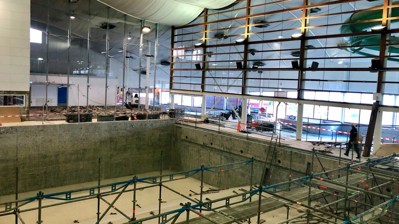 De ruim 3,5 miljoen euro kostende operatie gaat nog zeker een half jaar duren. Het zwembad krijgt een nieuwe uitstraling en een nieuwe glijbaan. Bijna de hele binnenruimte is inmiddels 'gestript' en al heel wat bouten zijn vervangen. "We liggen op schema", aldus projectleider Patrick Spanjersberg.