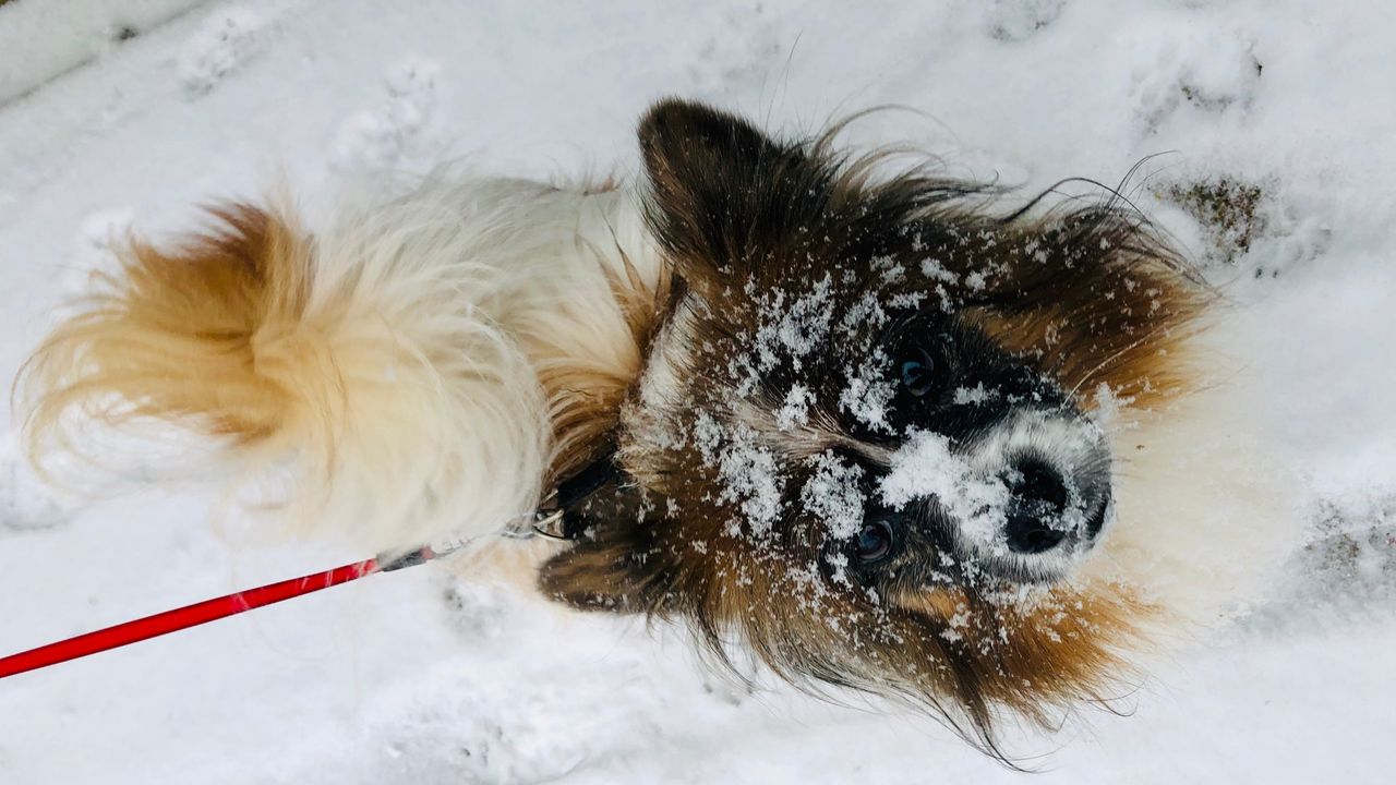 Niet alle dieren vinden het fijn in de sneeuw, maar deze hond wordt er helemaal blij van.
