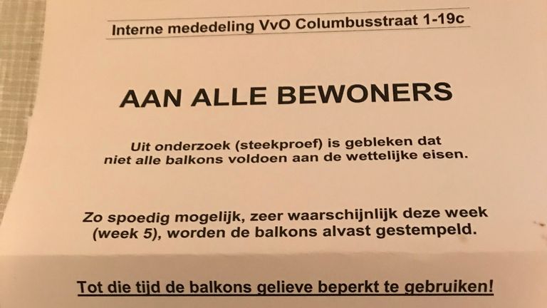 Afgelopen zomer kregen de bewoners al het advies om het balkon niet ‘met grote groepen te betreden’. Ook moesten zware voorwerpen als plantenbakken van het balkon worden verwijderd. De bewoners zelf mochten het balkon nog wel gebruiken.