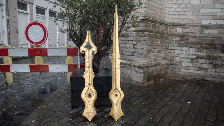 Met groot materieel zijn maandag de vier wijzerplaten van de Grote Toren in Breda getakeld. De cijfers zijn er tijdelijk af, omdat ze gerepareerd moeten worden.